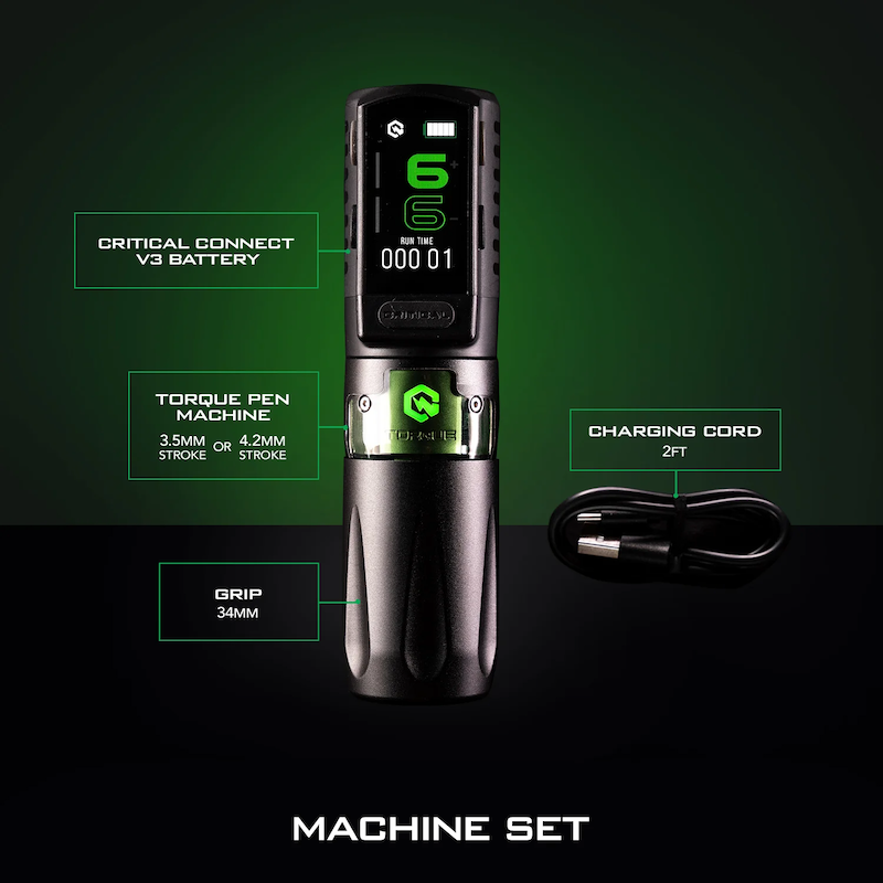 La Critical Torque Wireless Tattoo Machine representa el pináculo en tecnología inalámbrica para tatuadores profesionales. Diseñada con la revolucionaria Precision Strike Technology, esta máquina ofrece una potencia más firme y constante, permitiéndote realizar líneas sólidas y trabajos exigentes en menos pasadas.