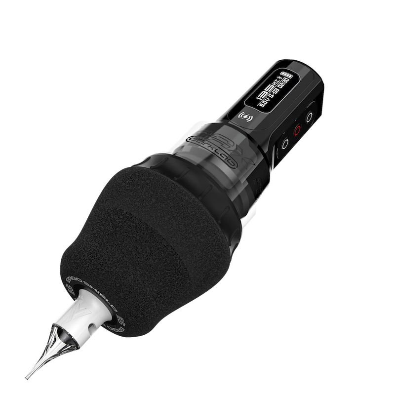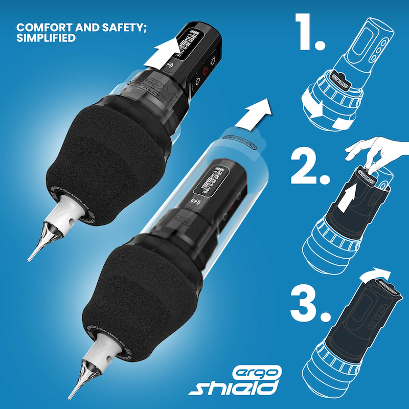 Olvídate de envolver tu máquina con film y cinta. Los grips Darklab ErgoShield de 40mm vienen con una funda integrada que se despliega al instante, reduciendo el tiempo de preparación a segundos. Solo colócalo, tira de la pestaña para desplegar la funda y comienza a tatuar. Su adhesivo resellable permite ajustes fáciles, como cambiar baterías o reacomodar la funda sin complicaciones.