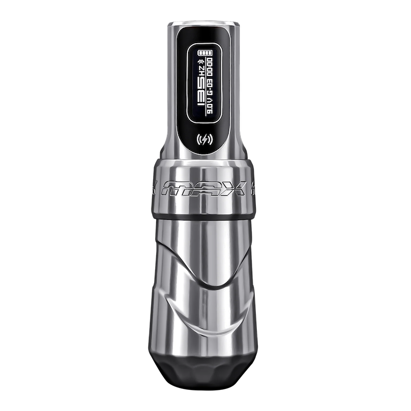 La Flux Max introduce una plataforma inteligente capaz de aprender tu estilo de trabajo: tipo de aguja, punta, tinta, presión aplicada y configuraciones utilizadas. La máquina siente, adapta y optimiza cada movimiento para una sesión más suave y estable.