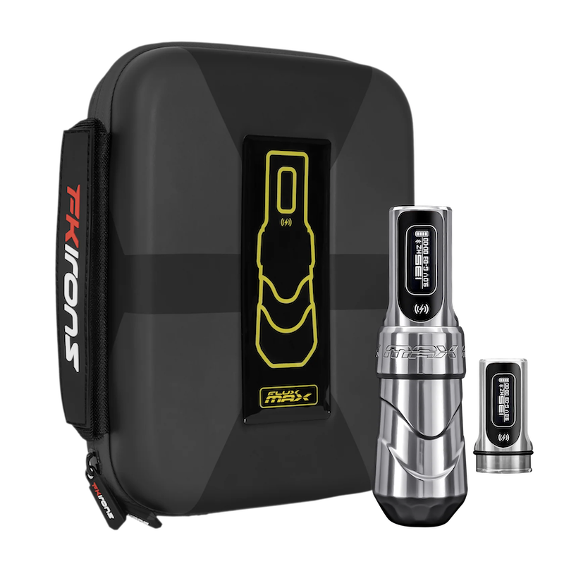La FK Irons Flux Max Blade Wireless Tattoo Machine w/ 2 PowerBolts II es la máquina más avanzada de FK Irons hasta la fecha. Desarrollada para ofrecer máximo control, personalización total y rendimiento inteligente, esta versión “Blade” integra mejoras internas y externas que llevan la experiencia del artista a otro nivel.