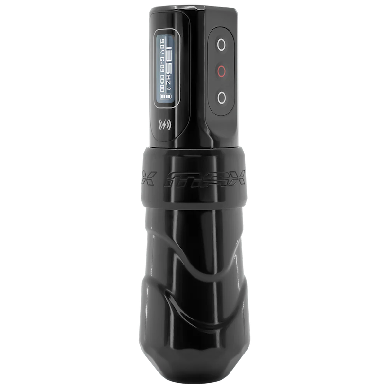 La Flux Max introduce una plataforma inteligente capaz de aprender tu estilo de trabajo: tipo de aguja, punta, tinta, presión aplicada y configuraciones utilizadas. La máquina siente, adapta y optimiza cada movimiento para una sesión más suave y estable.