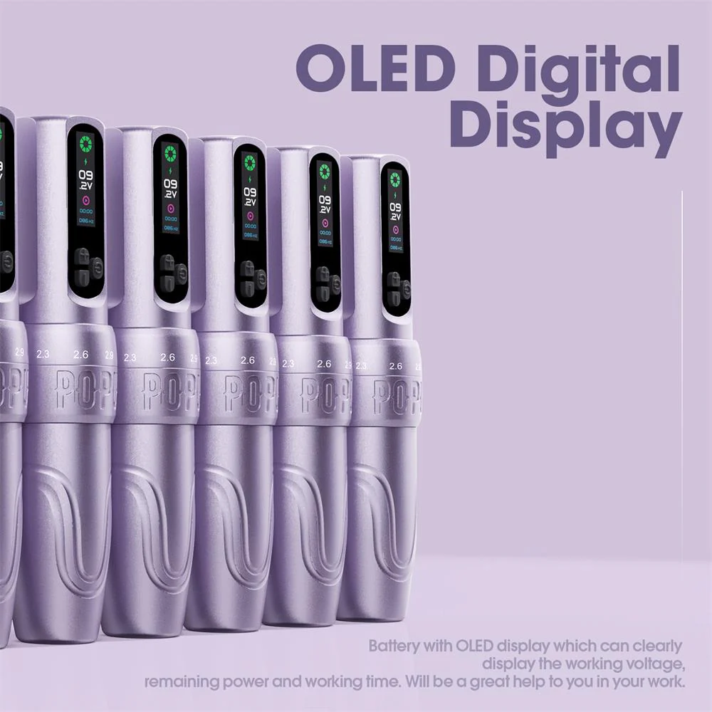 POPU DIVA es una máquina inalámbrica para tatuaje y micropigmentación con motor brushless, 6 strokes ajustables (2.0–3.5mm) y batería de larga duración. Precisión, potencia y control total en un diseño ligero y ergonómico.