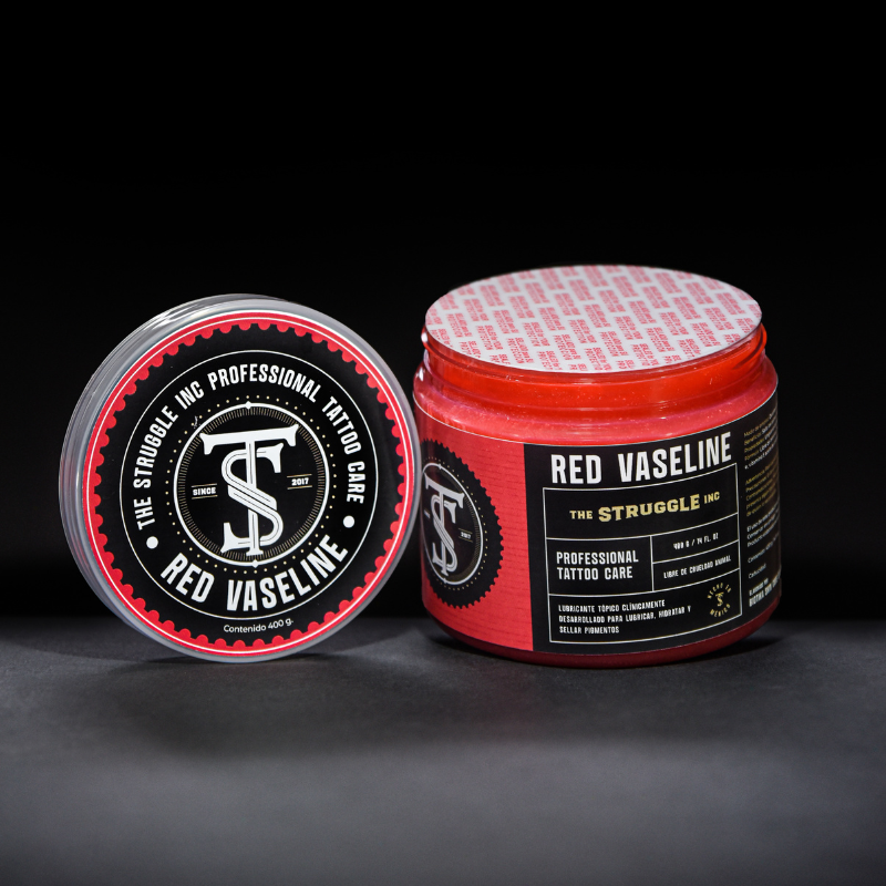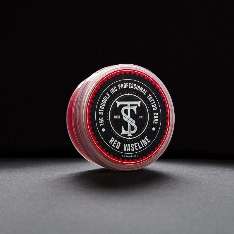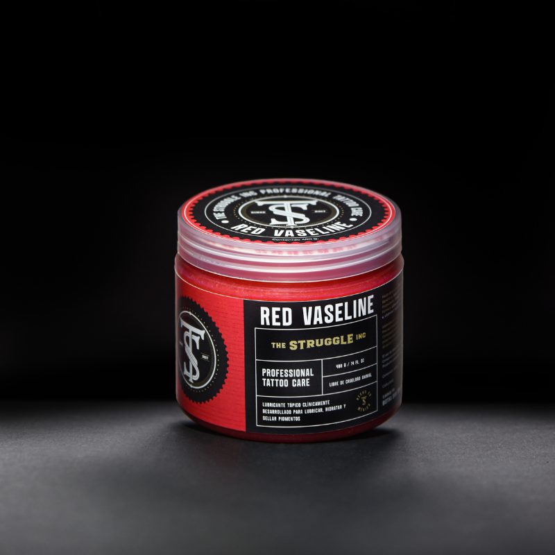 Nuestra Red Vaseline Grande enriquecida con aceite esencial de frutos rojos, manteca de karité, vitaminas A y E, esta vaselina natural actúa como lubricante tópico mientras sella los pigmentos. Su fórmula 100% libre de petrolato reduce fricción y calor producido por las agujas, mejorando la saturación de la tinta durante el tatuado. Además, calma la piel con un efecto refrescante, disminuyendo enrojecimiento e inflamación.