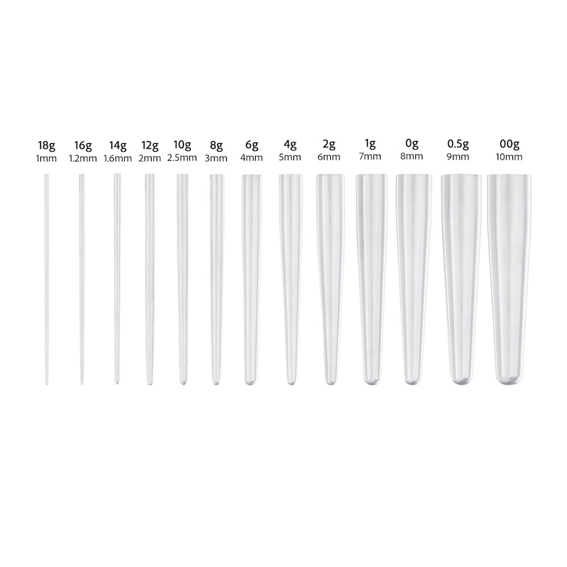 ⚠️ Nota: Los tapers están ligeramente sobredimensionados respecto al tamaño listado, para compensar el receso que facilita la inserción de joyería del calibre correspondiente.